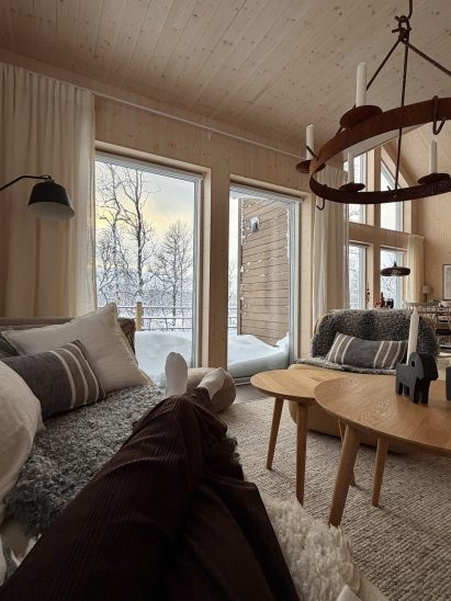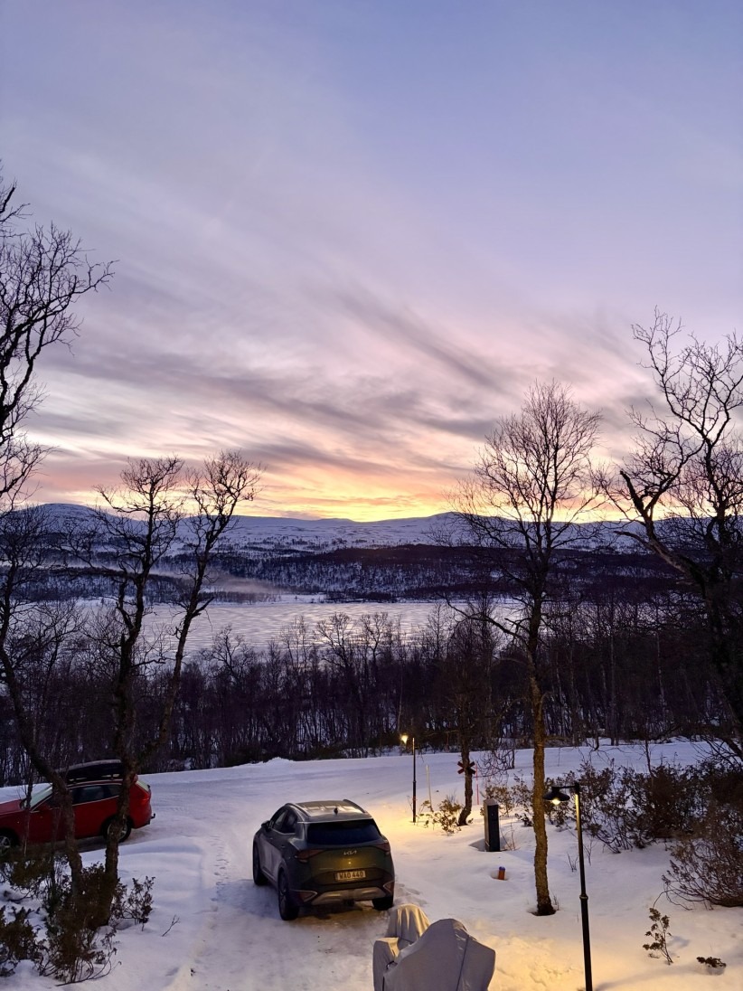 Det har stormat och snöat extremt mycket här, men har äntligen börjat lugna sig nu. Man har inte kunnat njuta av vädret så mycket som man hade önskat! Men första dagen när vi kom hit var det magiskt vackert – lite ”lugnet innan stormen” faktiskt😅 Då såg eftermiddagen ut såhär: