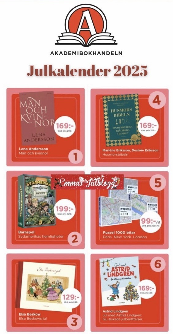 Missa inte Akademibokhandelns Julkalender som drar igång 1 december, med ett nytt bra erbjudande varje dag mellan 1-24 december😍✨