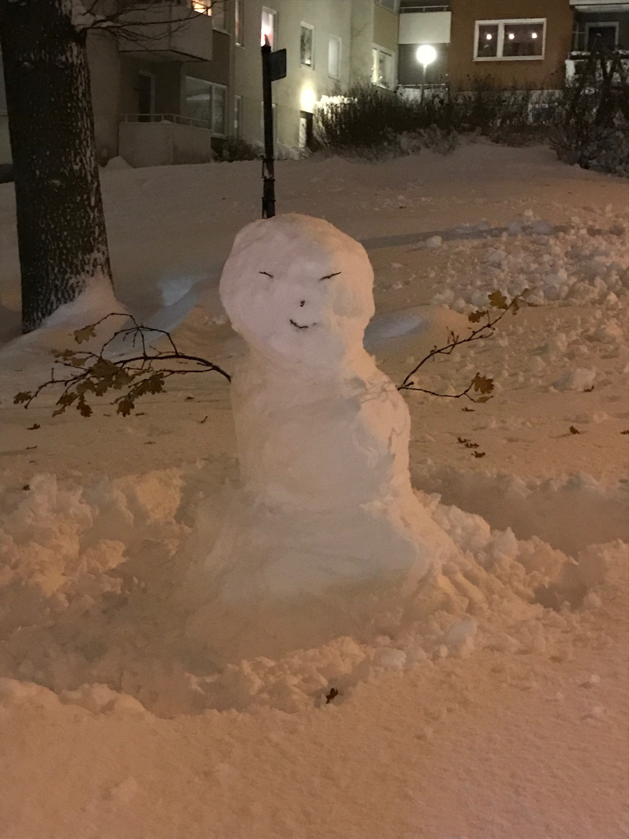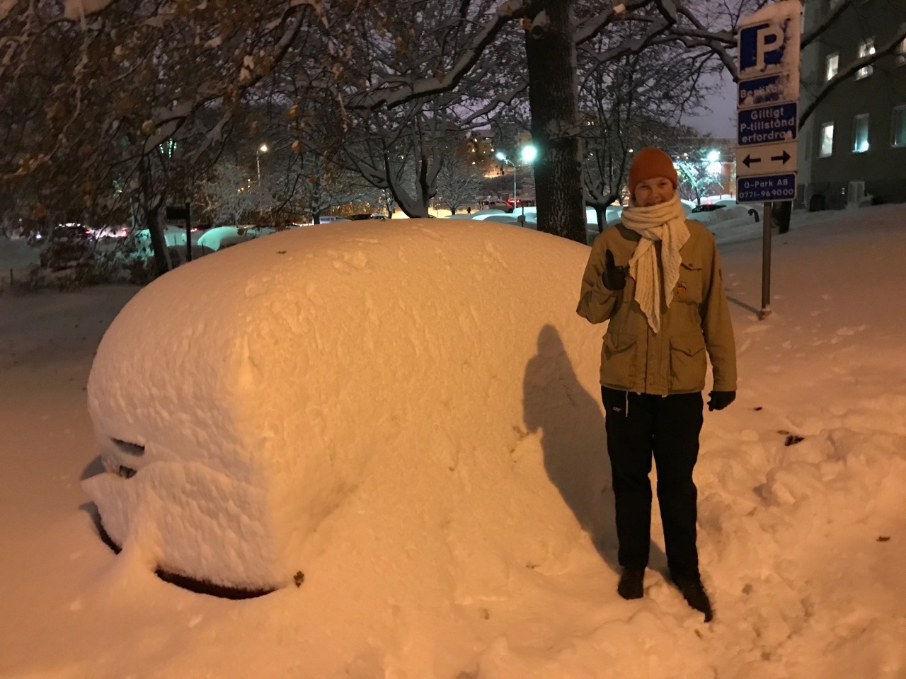 Har verkligen haft en hemsk dag på alla sätt och vis(inte pga snön), då var det iaf kul att avsluta det hela med lite snöbollskrig och en snögubbe som Samuel byggde! Snön är vacker! Förresten, där bakom mig står våran bil – totalt insnöad med sommardäck, yay!!