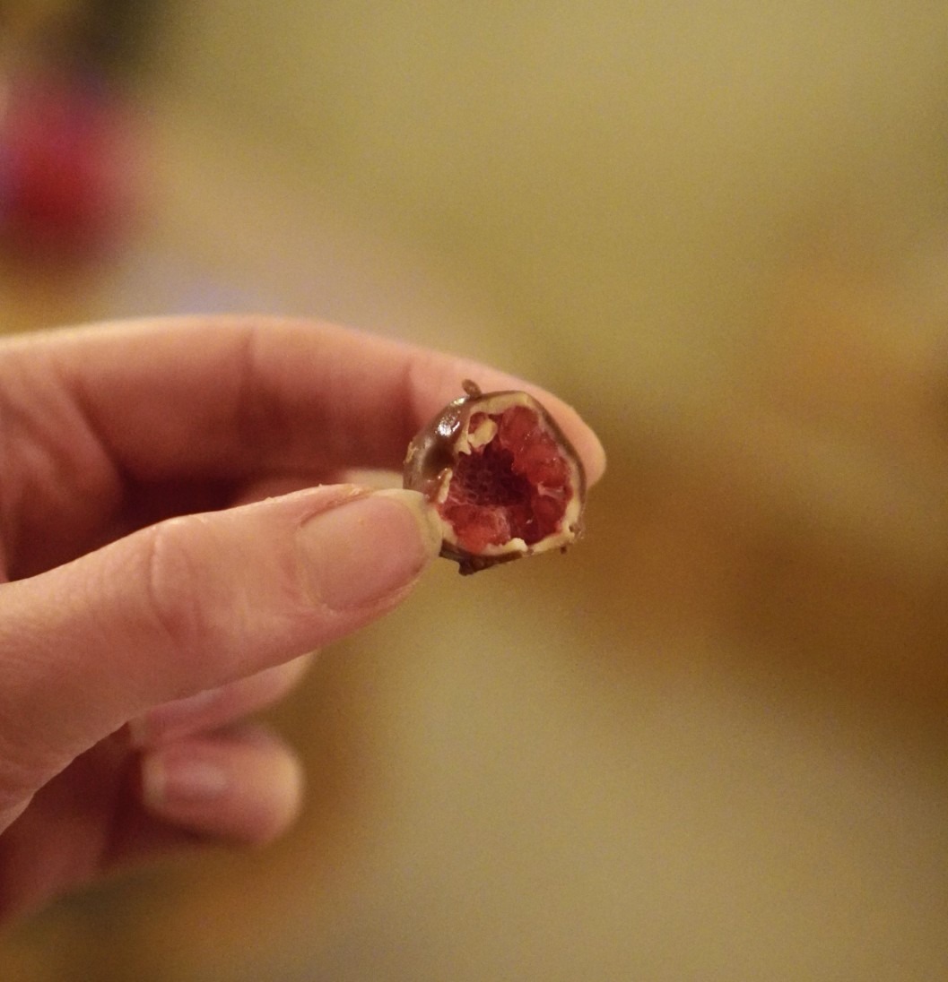 Vi hade laddat upp med lite Harry Potter-godis som vi köpte i USA på höstlovet och så släckte vi ner lite mysigt och bara körde! Vi provade även de virala hallonen doppade i choklad och de var faktiskt väldigt goda! ☺️