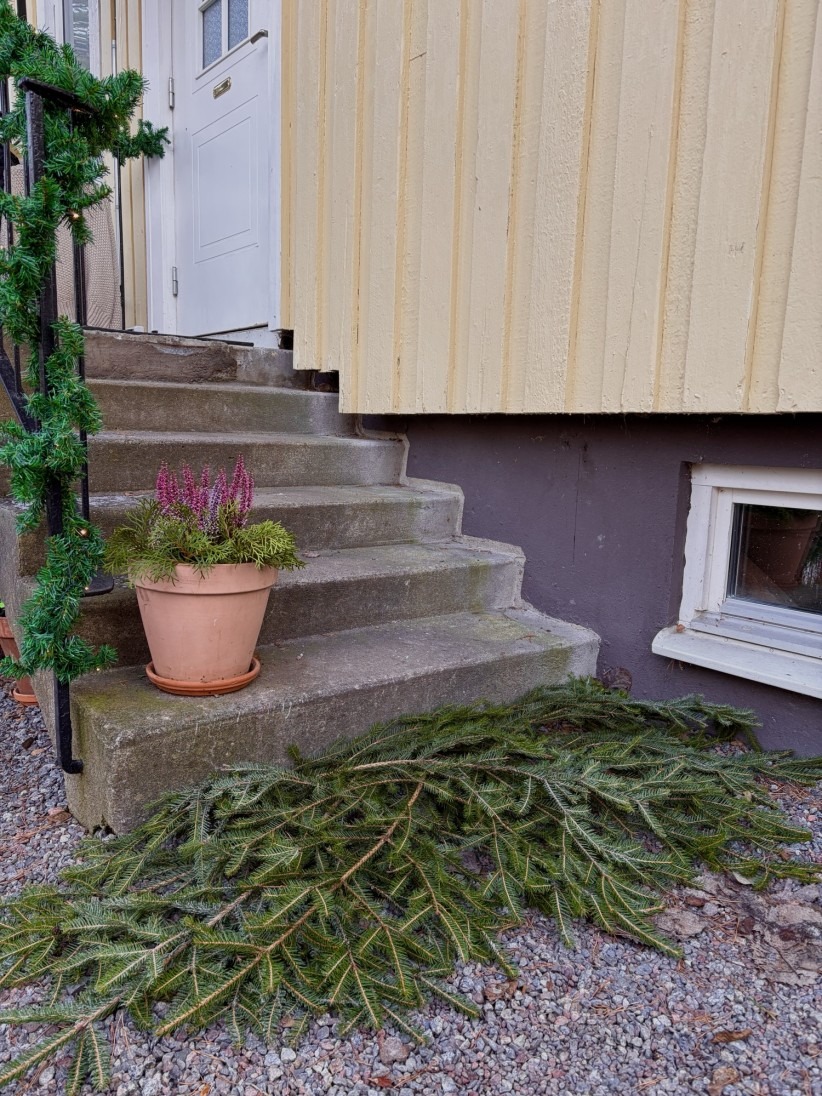 Jag släpade hem massa granris i helgen, som jag hittade från nedhuggna / nedfallna träd i närheten av där jag bor! Så underbart 😍 Har nu lagt massa nedanför trappen som ni ser och även på baksidan vid utgången mot altanen. Det är sååå fint och stämningsfullt! 🌲