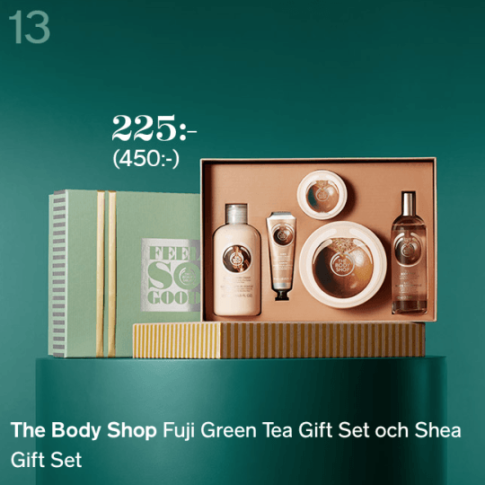 Ett giftset med flera produkter i doften Shea eller Fuji green tea som brukar kosta 450 kr men som imorn kostar 225 kr! Det är ju en perfekt julklapp till dig själv eller någon du håller kär 🙂