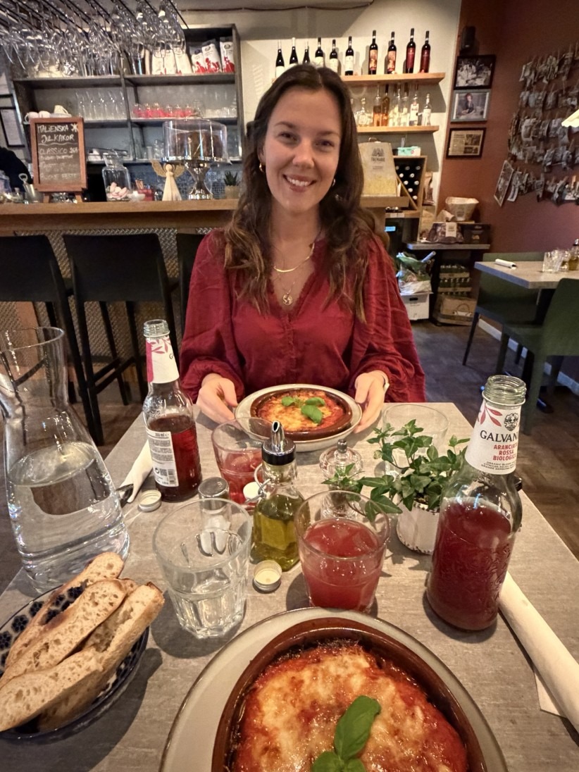 Sen på eftermiddagen åkte jag och mamma till Nacka strand och åt på en favoritrestaurang Da Antonio e Lucia, där världens godaste melanzane alla parmigiana finns 😍 Alltså en gratäng med aubergine, tomatsås, mozzarella och parmesan. Den är magiiisk 👏
